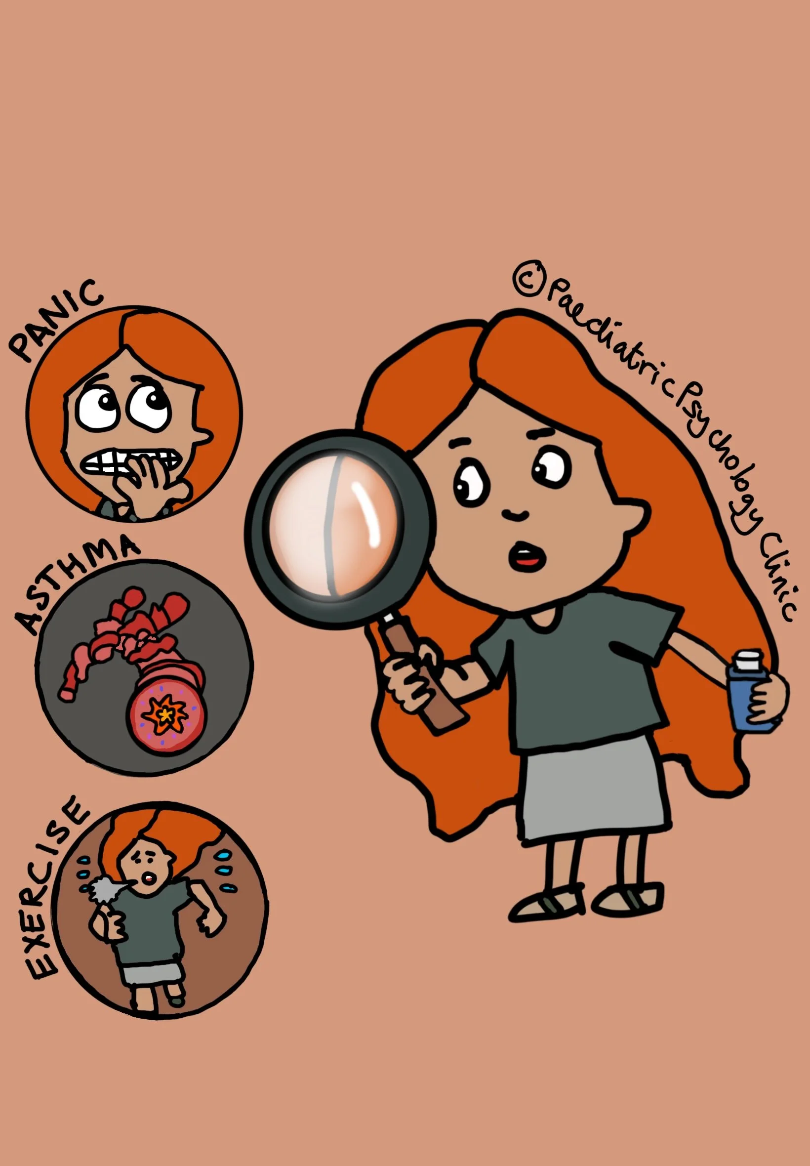 Children who have experienced asthma, or other breathing difficulties, can sometimes confuse symptoms of panic, asthma and exertion (from exercise) because all three can cause breathlessness, chest tightness and a racing heart. This overlap can make it really tricky to know whether they need to calm their breathing, rest or use their rescue medication.